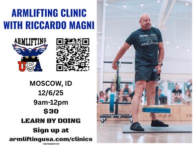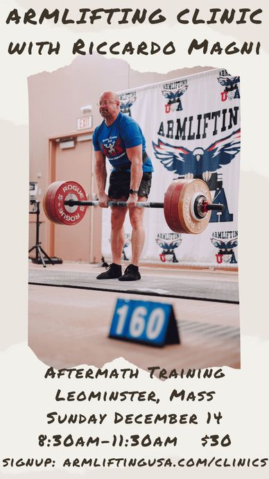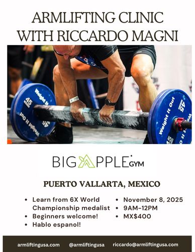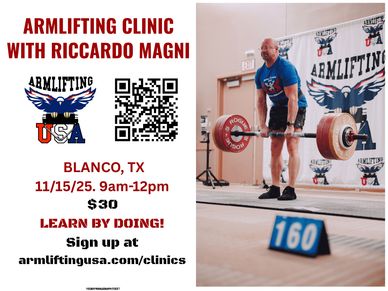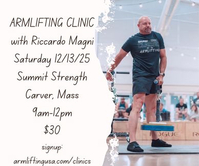 Riccardo Magni will be teaching how to properly do the main lifts for competitiion in Armlifting.